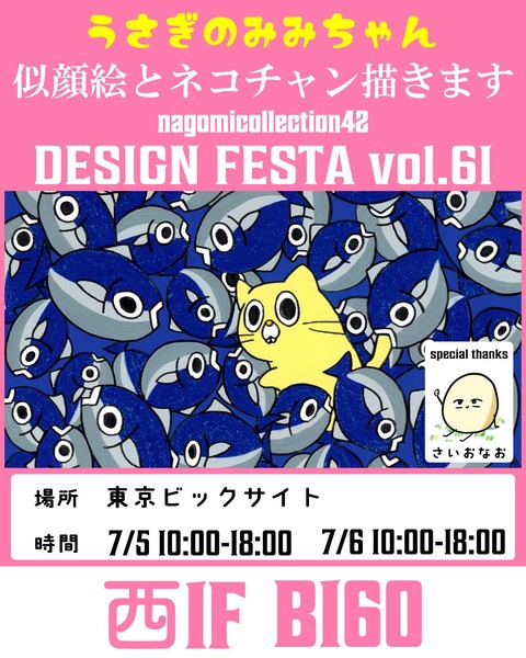 7/5,6はビッグサイトで行われるデザインフェスタに出展いたします。 ブースはB160です。 いつもの似顔絵会や、直筆ポストカード、原画の販売に加え、グッズのサンプルセールを行います。Tシャツやトレーナー等の衣類、ステッカーやアクリルスタンド等の小物を安価で ...