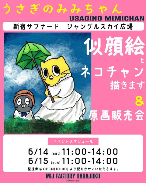 いつもの似顔絵やイラストのイベントに加えて、原画の販売を行います。 原画はイベントでしか実物を見ていただける機会がないので、ぜひお越しください。 ※すでに売り切れているものもございます※ ...