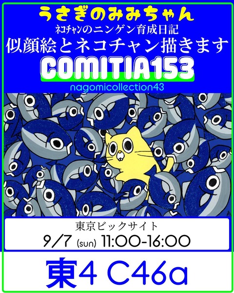 9/7(日)にビックサイトで行われるコミティアの出展のお知らせです。 ネコチャン漫画の既刊と新刊の販売や、直筆ポストカード·原画の販売、似顔絵を描くイベントを実施いたします。 ポストカードや原画には限りがございますので、お求めの方はお早めにお越しください! 似顔 ...